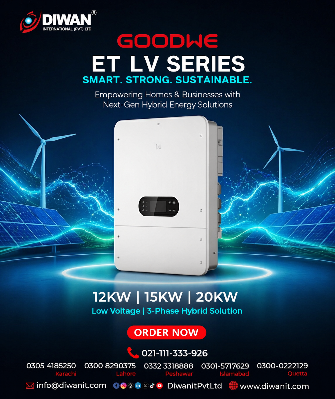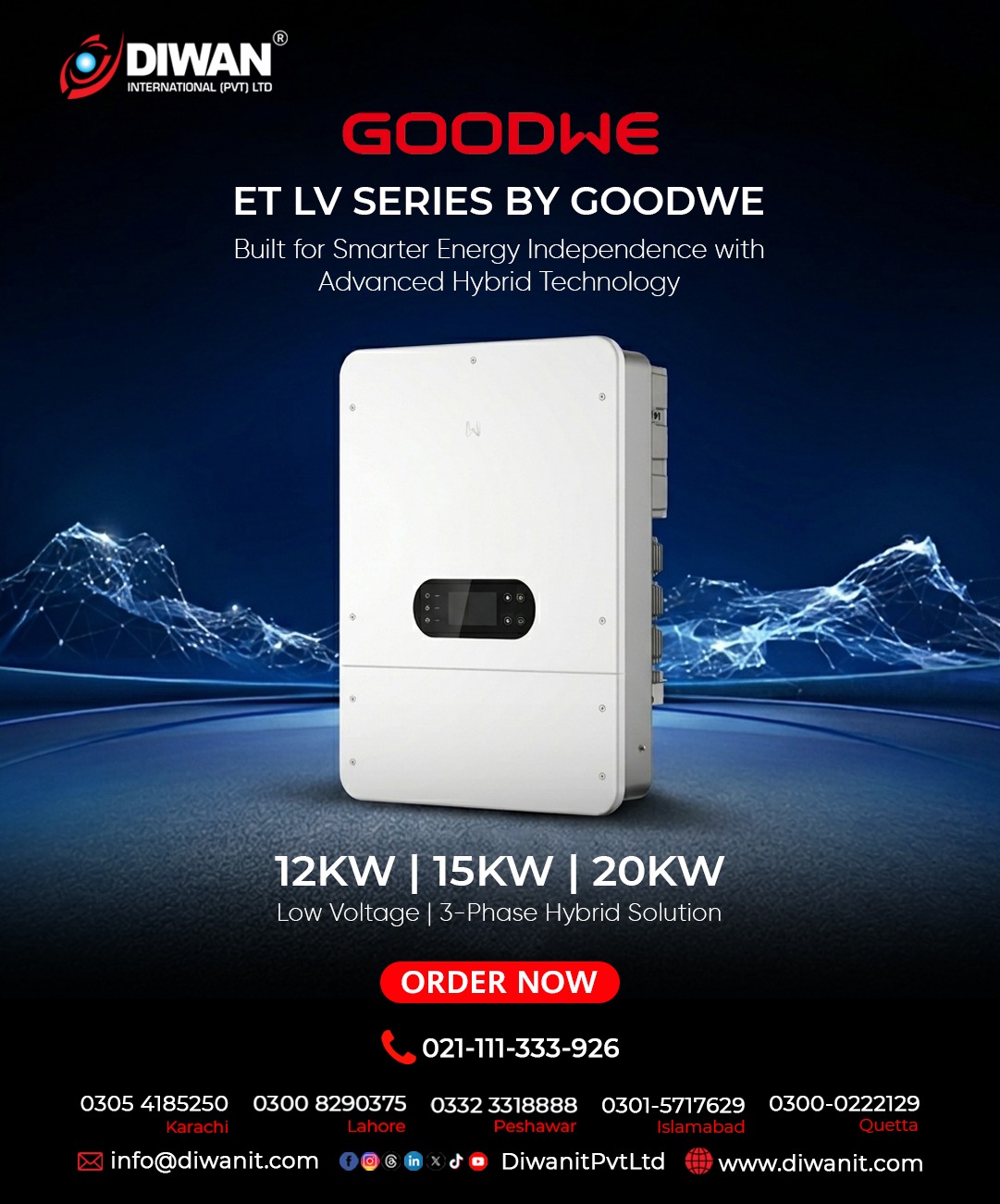 Diwan International Private Limited is an authorized and certified distributor of GoodWe in Pakistan, supplying a complete range of high-quality solar inverters and smart energy solutions for residential, commercial, and industrial solar energy projects.